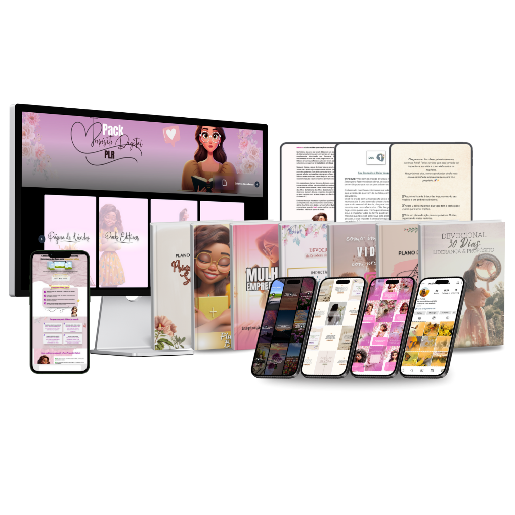 Venda mais mostrando seu produto do jeito certo Mockups modernos, femininos e de altíssima qualidade para você divulgar suas páginas, e-books e templates como as grandes marcas. Basta colocar sua arte e postar — suas vendas vão subir só pelo visual mais profissional.